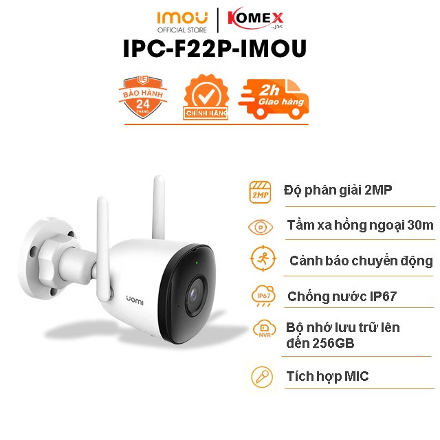 Camera imou wifi ngoài trời F22P/F22FP/F22FEP 2M 1080P tích hợp đèn báo, chống nước và có cảnh báo chuyển động - komex
